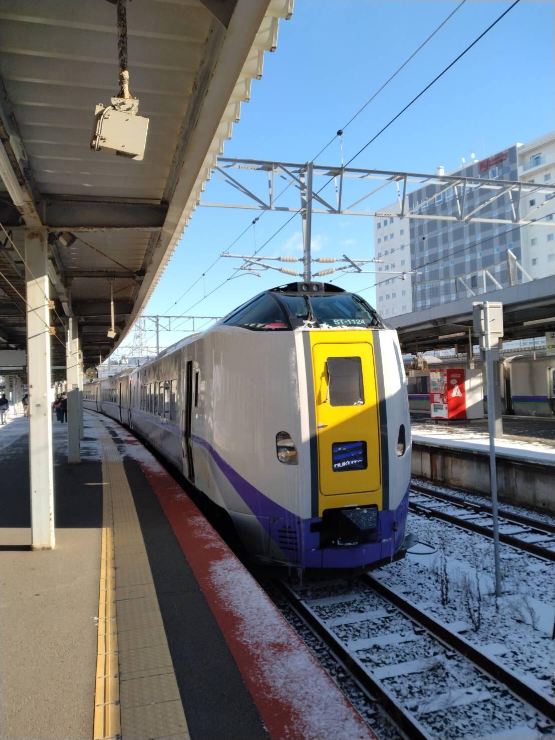 札幌は7:30発、到着は12:40と5時間越え列車旅です。