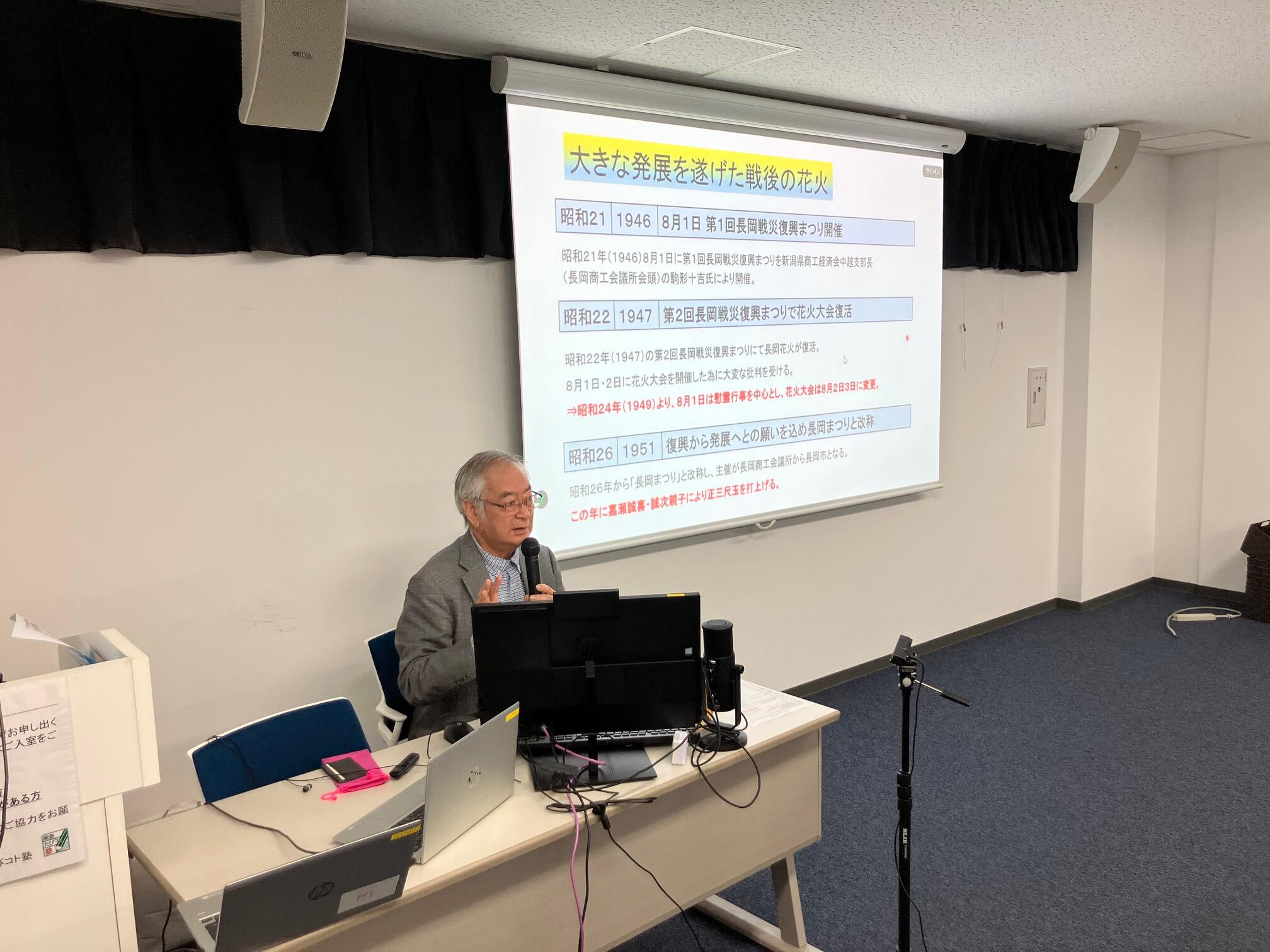 講師は長岡よりお越しいただきました元長岡まつり実行委員長「藤井 芳 様」です。